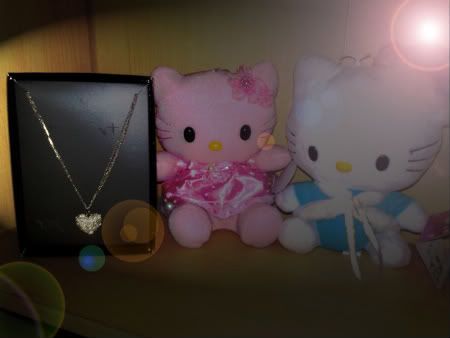 Darling played the UFO catcher and caught me a Hello Kitty and Dear Daniel. The next day, he surprised me with a Diamond Heart Necklace. I'm angry initially cause' he took so long to arrived but when I saw the present, my heart melted. I'm not being materialistic, just that he seldom took the initiative to surprise me.