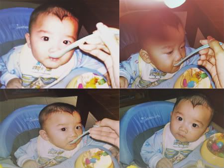 I fed Zenfred with Baby Food again today and this time round I remembered to take pictures! Guess he enjoys it cause' he finish up the whole bowl! Shall buy more back to feed him soon.