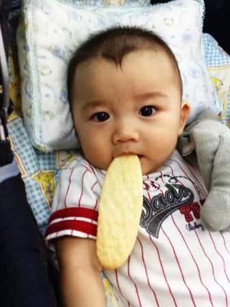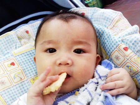 Anyway, Zenfred had started eating Baby Food. He's learning how to swallow. Tried to fed him just now. Things didn't turn out as bad as the previous times. He's also eating Baby Bites currently. Slowly, he can cut down the intake of milk. Milk powder is really too expensive la! $120 per month (Zenfred).