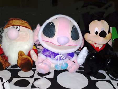 I've got new soft toys again. Yesterday went to Tampines Mall with Darling and his mum. Darling kept insisting on wanting to catch bears. Actually I wanted a brown bear. Spending almost $40 yet still didn't managed to catch it. Went to the other machine and end up catching a dwarf. Played the so called 'Jackpot Machine'. We were real lucky! We only reached the B column and we hit Jackpot, straight away got prize. 2'nd time haven even reach the A column. 3'rd time at A column. Brought home 4soft toys and a big bag of goodies!