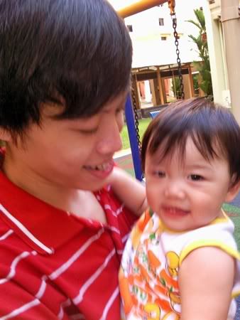 Speaking of the two boys, Benfred is learning to be toilet trained now. During the day, he doesn't need a diapers anymore. He knows how to let us know if he needs the toilet. Though he might feel weird without "that sense of security", at the least, he didn't wet the floor or bed anymore. Like the past, always watching Barney VCDs and DVDs. Might be his influence, Zenfred loves to watch Barney too. And yeah, Zenfred can walk on his own now. Not only walk, but run and turn around. Might be a little unstable and he dislike wearing shoes but he should be alright soon. Recalling the past, Benfred learned to walk and run around this age too. Zenfred ain't as active as Benfred. Zenfred loves food, no matter what kind, be it biscuits or rice, as long as its edible, he definitely wants it. Benfred tends to be more picky about food, he doesn't love to eat rice and he loves biscuits. Therefore, at times it is quite hard to feed them during lunch or dinner. Thought their personality ain't the same, they are both as naughty. Tends to fight over biscuits or toys. When Zenfred loses the fight, he will bite Benfred's arm or back. Tried to stop Zenfred but he doesn't know that he's in the wrong. Guess this is what usually happens when you've 2 boys at home? I remembered my 2brothers used to fight over stuffs too =X